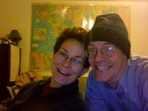 What do farmers do in the winter? I don’t know about the other guys, but I’ve been busy … here’s a pic of me and hubby, hard at work. I bought a new computer (a necessary piece of farming equipment in the 21st century) and, as we were getting acquainted with it, discovered it has a camera in it. This photo was taken moments after I said, “I wonder what happens when I press this key?” Hubby, suspecting what was about to happen, exclaimed, “Quick, smile! smile! smile!”
