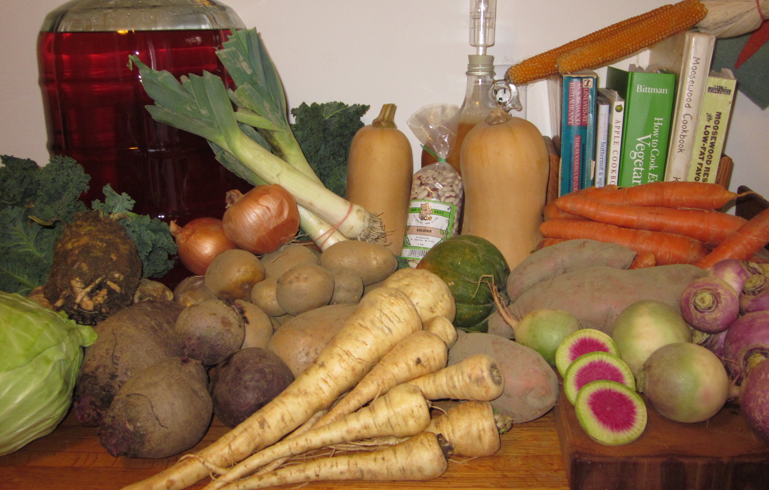 Everything in the photo, except the cookbooks and brewing hard cider, was in the share. Here are the details.