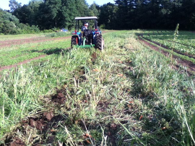 Picadilly likely has more than 10 row-miles of carrots planted at this point in the season. The early plantings supply both the summer shareholders’ weekly take, the later are enough to take Shared Harvest members through the winter. Picadilly’s soils are sandy-loam with very few rocks, which makes it easier to tractor-cultivate and grow healthy size carrots.